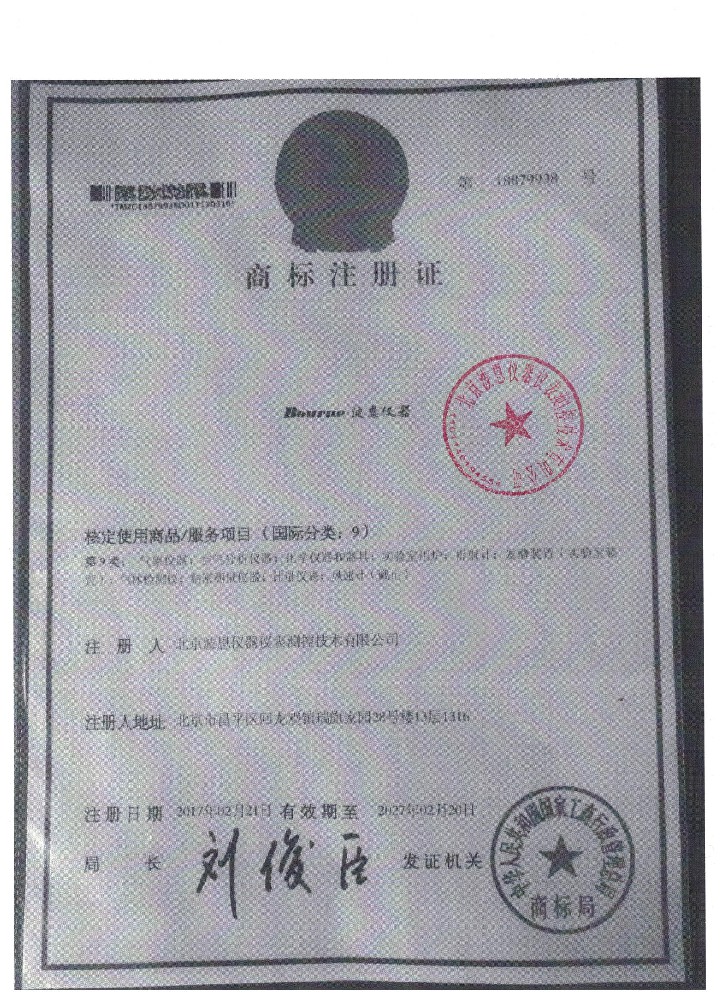 波恩儀器公司商標證書