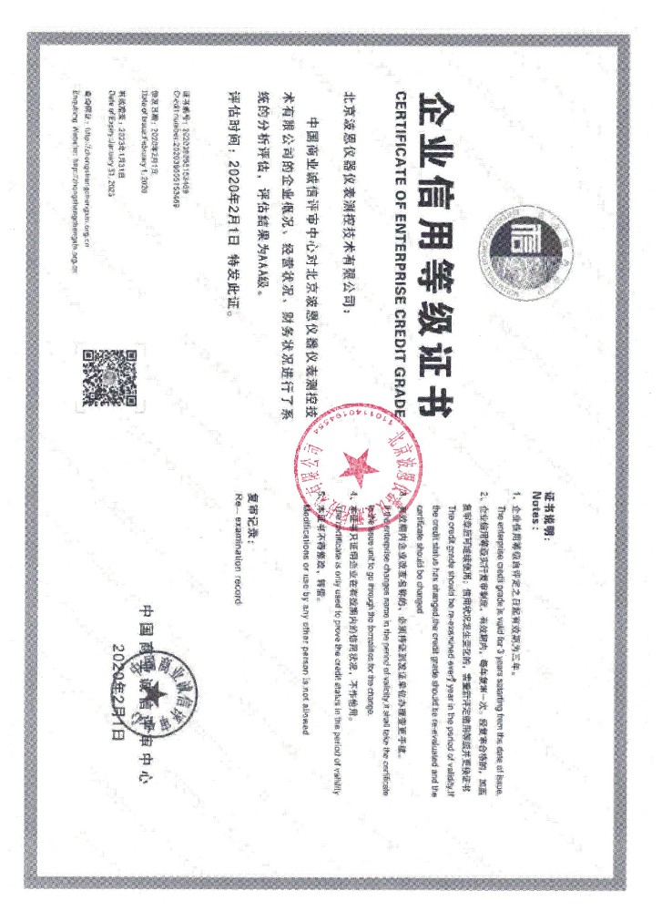 波恩儀器公司3A等級證書