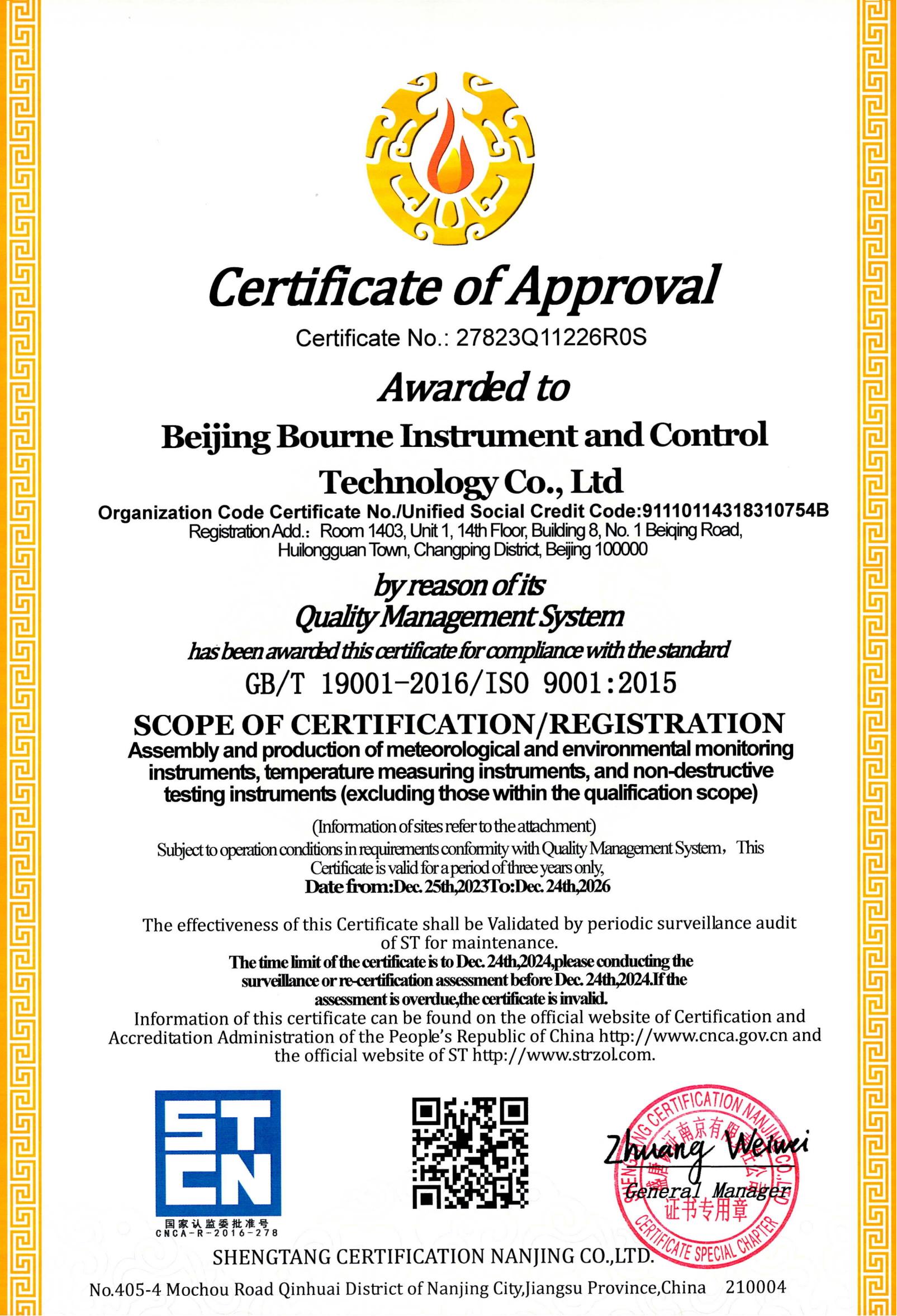 經過全體員工和機構審核老師們近一個月的現場審核等工作,北京波恩儀器儀表測控技術有限公司及內蒙古分公司車間的ISO9001質量管理體系認證順利完成,現已經順利發(fā)證,這也標志著北京波恩儀器公司的生產管理、環(huán)境管理、職業(yè)健康安全等管理工作邁向了新的臺階。ISO9001質量管理體系認證標準是很多國家,特別是發(fā)達國家多年來管理理論與管理實踐發(fā)展的總結,它體現了一種管理哲學和質量管理方法及模式,已被世界上100多個國家和地區(qū)采用。ISO9001國際質量管理體系標準是迄今為止世界上最成熟的一套管理體系和標準,是企業(yè)發(fā)展和成長之根本。