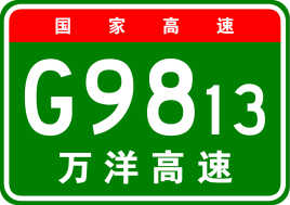 萬(wàn)洋高速(萬(wàn)寧一洋浦高速公路,Wanning-Yangpu Expressway),高速編號(hào)為G9813,起點(diǎn)開(kāi)始于萬(wàn)寧市后安鎮(zhèn)后安樞紐,終點(diǎn)結(jié)束于儋州市白馬井鎮(zhèn)白馬井互通,全長(zhǎng)163.42公里。